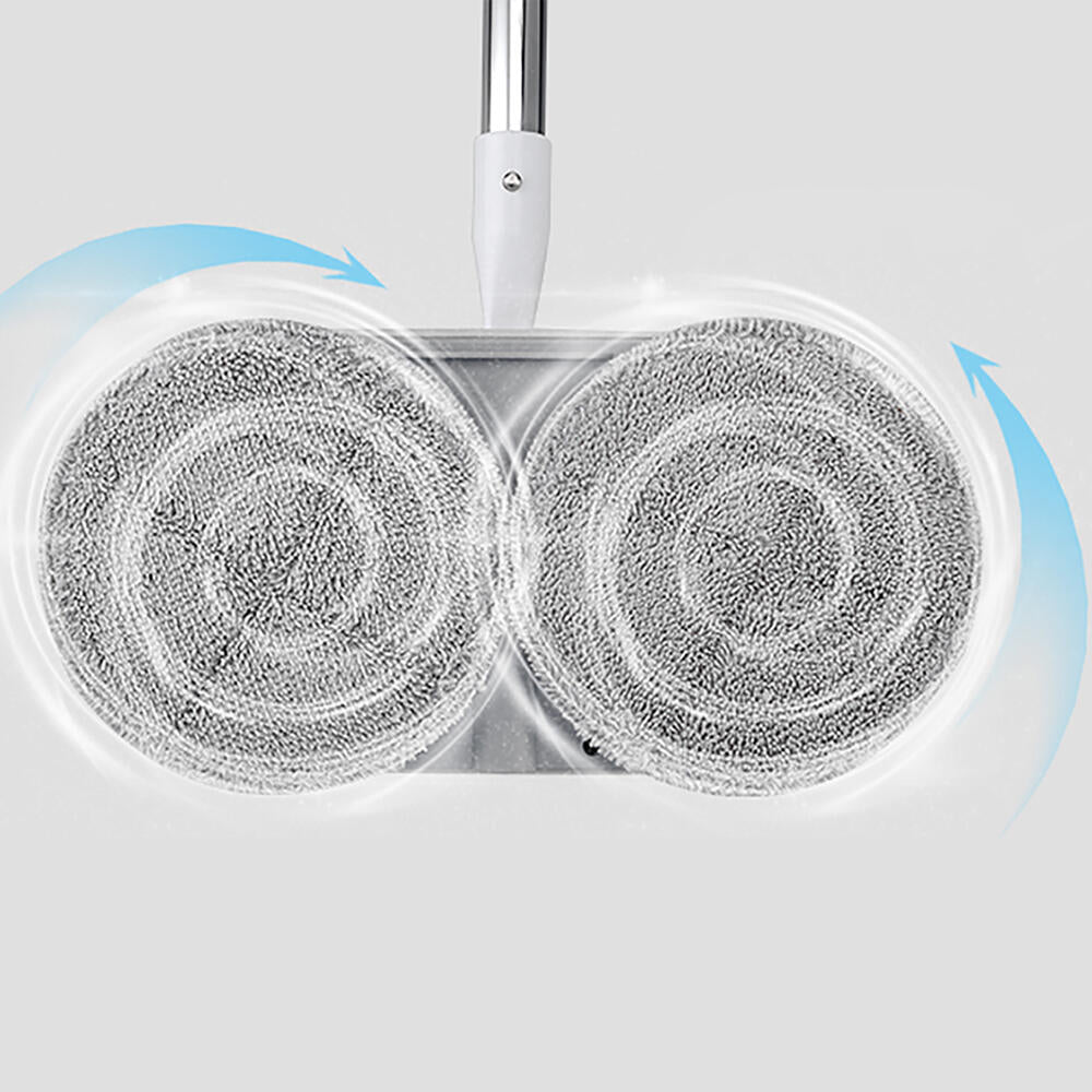 Descubra o esfregão elétrico sem fios recarregável, um esfregão rotativo com uma velocidade de rotação de 150 RPM, bateria de 2000mAh que proporciona 40 a 50 minutos de autonomia, quatro discos rotativos de microfibra, cabo extensível com altura regulável, reservatório de pó de 200ml, utilização a seco ou húmido e limpeza até 10 vezes mais eficiente e rápida do que os esfregões tradicionais. Capta e absorve a sujidade sem esforço.