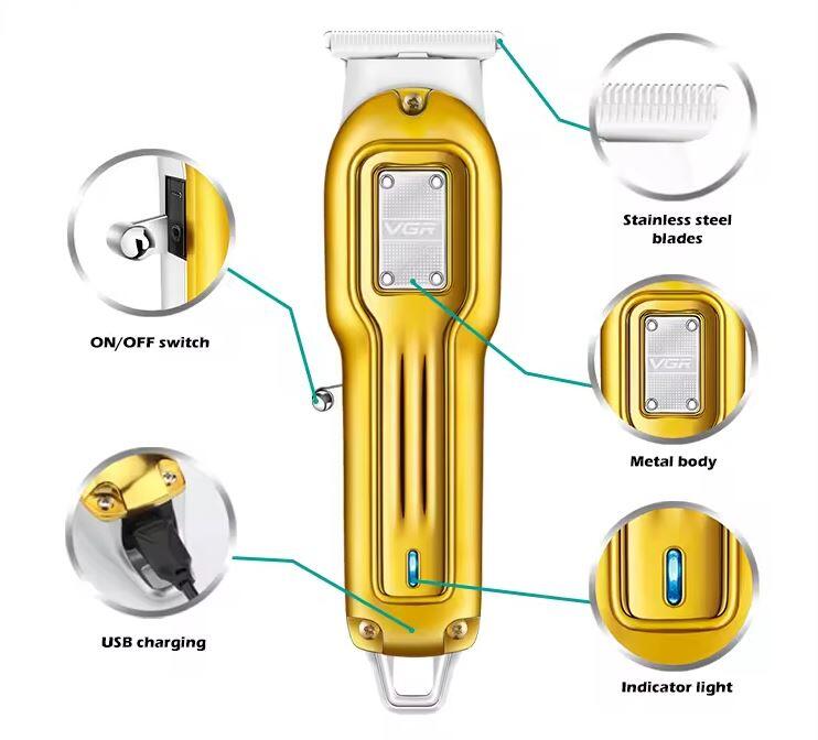 Descubra a máquina de cortar cabelo recarregável VGR com acabamento premium , a ferramenta definitiva para um visual impecável no conforto da sua casa. Design profissional, resultados de barbearia.
